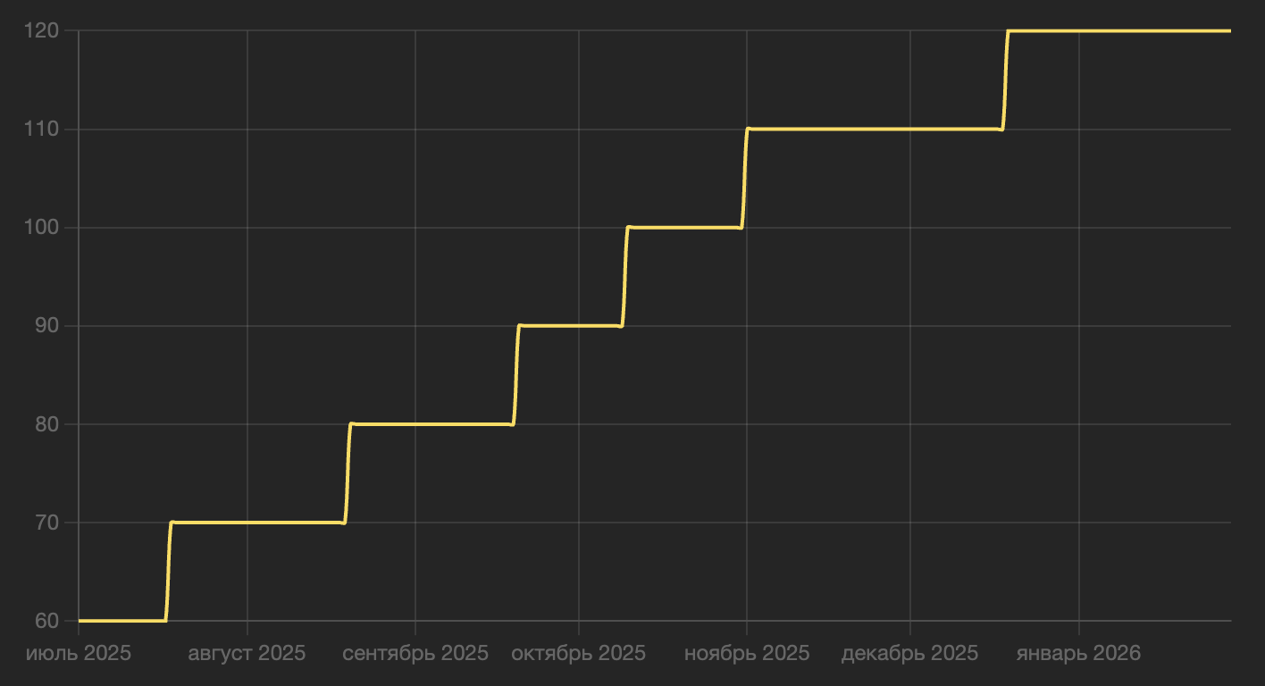 Рост показателя ИКС логично отражает совокупный эффект проведённых работ: увеличение поискового трафика, рост доли целевых коммерческих запросов, улучшение поведенческих метрик и конверсии. За период с июля 2025 по январь 2026 ИКС увеличился с 60 до 120, то есть на 100%, при поэтапной и стабильной динамике без резких колебаний, что подтверждает системное усиление качества сайта и его ценности для поисковых систем.