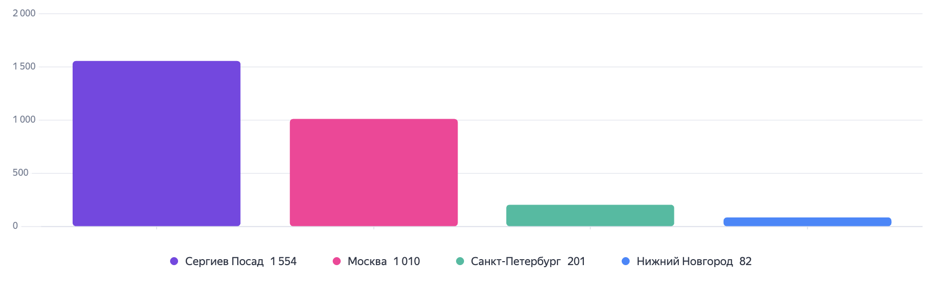 Основной трафик формируется в приоритетных регионах продвижения — Сергиевом Посаде, что подтверждает корректность выбранной геостратегии и высокий интерес целевой аудитории в ключевой для бизнеса локации.