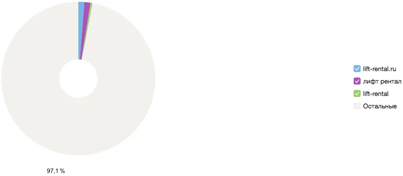 Причем основная масса переходов была по целевым запросам, брендовый трафик составил менее 3%.