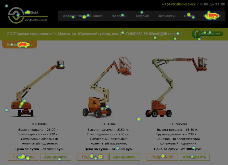 Увеличение трафика за счет целевой аудитории. Вывод сайта в топ 10 Яндекса по основным ключевым запросам, включая самые сложные и высокочастные запросы для данной сферы – "аренда подъемника" и "аренда подъемника в москве". Улучшение показателей конверсии за счет доработок на сайте.