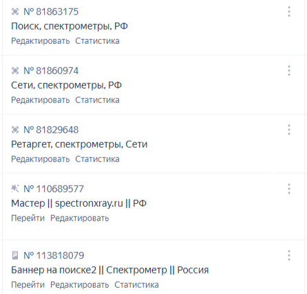 При настройке кампаний важно было учесть специфику товара для рекламы — серийные аналитические приборы отечественного производства для промышленных компаний. Для чего тщательно собрать ключевые фразы для показа рекламы и дополнительно фильтровать аудиторию с помощью текстов объявлений.